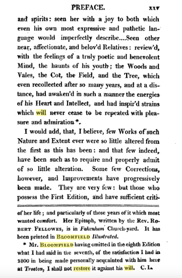 Thus the struggle for supervision of Bloomfield’s verse and biography, and, still more, the resentment of poet and publisher by patron, was made apparent to all readers. Lofft’s remarks remained in later lifetime editions of the poem (1808, 1810, 1811, 1815, 1820): he had, it might seem, the last (and first) word.